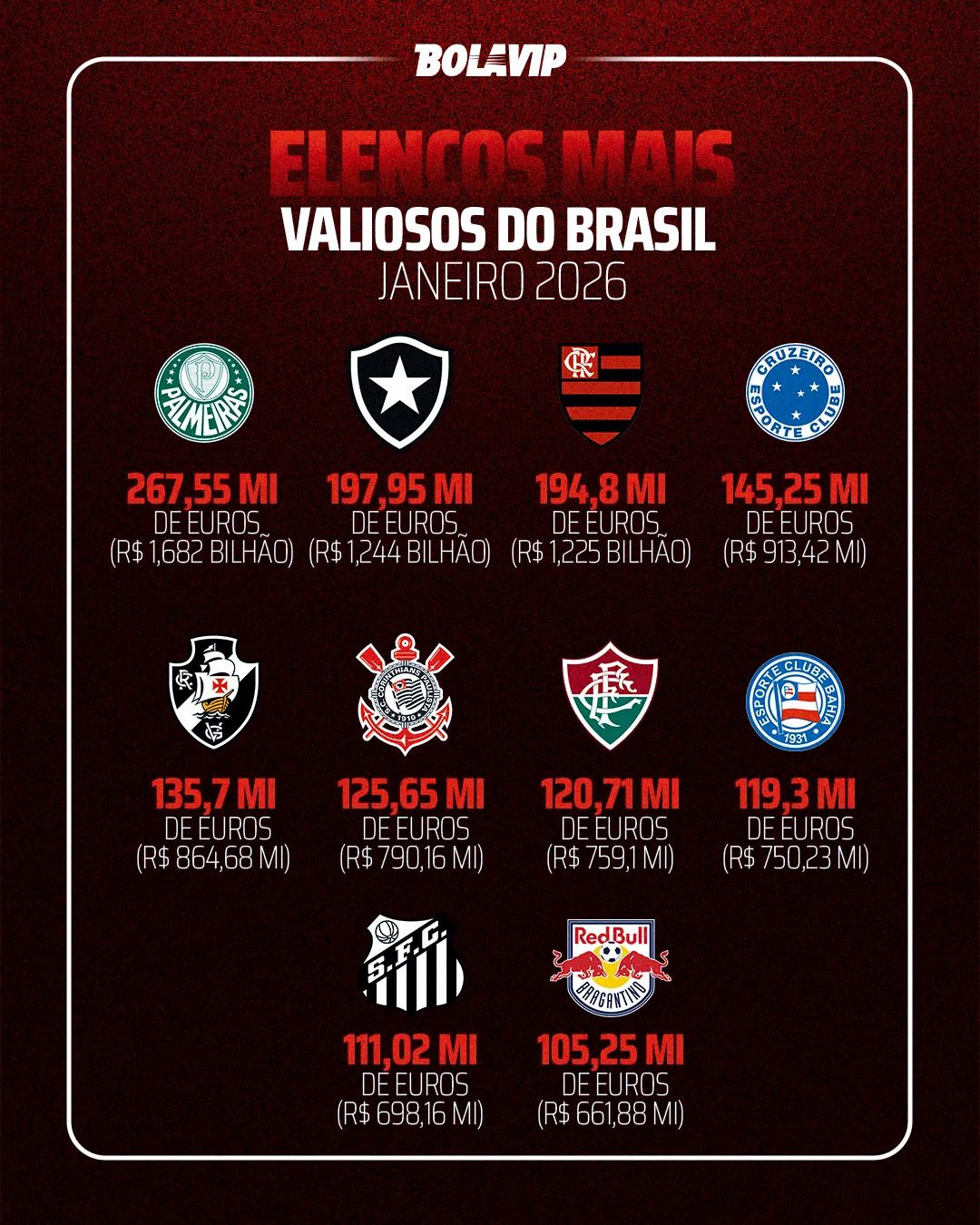 Com um empate e uma derrota, o Santos é o 17º colocado do Brasileirão, dentro da zona de rebaixamento. Já o Furacão, com três pontos (e um jogo a menos), aparece na 10ª posição e fará sua estreia em casa na competição.